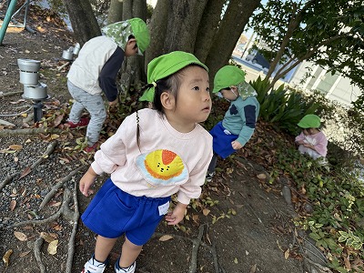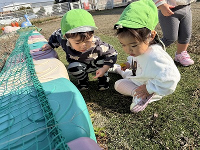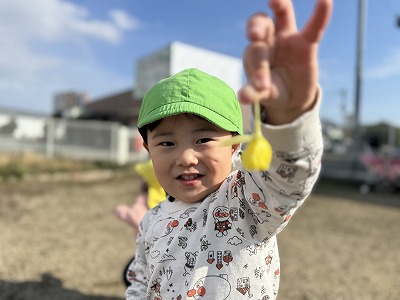公園では、ボール遊びやお花探しに夢中の