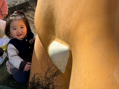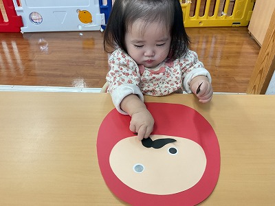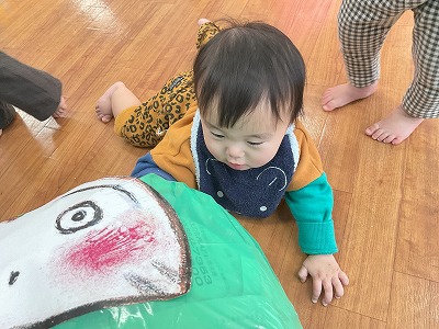 大きなだるまさんに触りに行ったり、お顔を