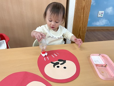 お正月遊びでは、だるま転がしを楽しみました!