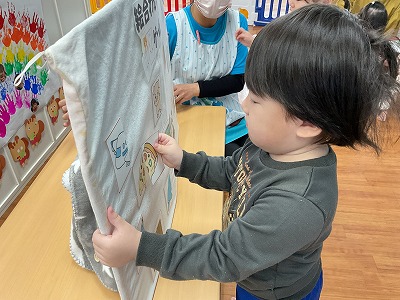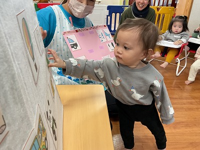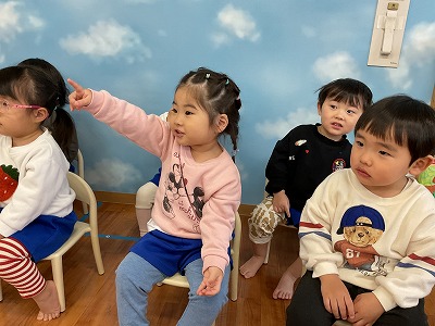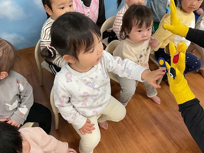 令和8年1月29日 お楽しみ会 今月は、お楽しみ会を行いました(*^^*) まずは、手袋シアターです♬ 『すうじのうた』は、みんな知ってる 歌なのでノリノリで歌ってくれましたよ! 『こぶたがみちを』は、ぶたくんの首や 鼻・耳が伸びて色んな動物に大変身♡♡ 興味津々で見てくれました(^^♪ その後は、絵合わせカードゲームをしました☆彡 どのカードと、どのカードが合うのか… よ~く考えながらお友だちが貼り合わせて くれました!! みんなで力を合わせて可愛いカードの 完成です(*^^*)