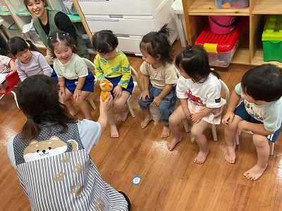 令和7年10月24日 誕生会 10月の誕生会がありました🎂 今月は、3名のお友達が 誕生日を迎えましたよ✨ 出し物では、柴犬の『まめちゃん』が 遊びに来てくれました♩ 「かわいい~!」と大喜びの子ども達♡ 最後は、みんなでカレーライスを作りました🍛 とっても美味しくできましたよ(*^^*)