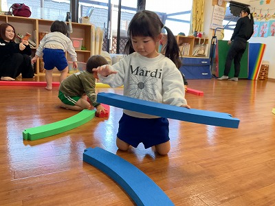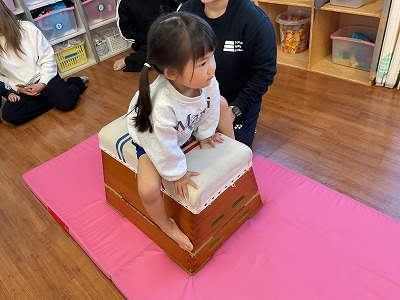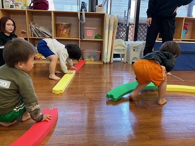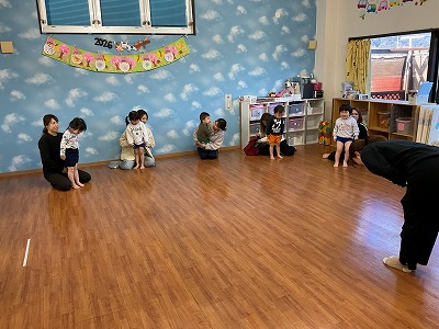 令和8年2月26日 2歳児親子体育教室 2歳児(きりん組)の親子体育教室を行いました! 初めはいつもと違った雰囲気に緊張した様子の こどもたちでしたが、体育教室が始まると いつも通り元気いっぱい体を動かして、 楽しんでいましたよ♩ 2歳児は、卒園前最後の体育教室でした。 大好きな保護者の方と一緒に 体操をすることができて、 とっても喜んでいましたね♡ ご参加いただきありがとうございました☺