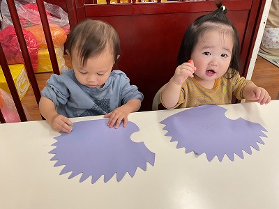 子ども達は好きなクレヨンで絵を描いて