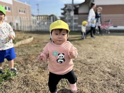 頑張っています♪園庭でかけっこや行進の練