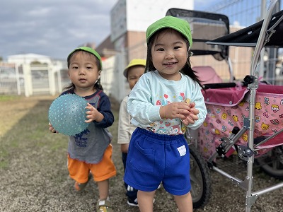 公園では、ボール遊びやお花探しに夢中の