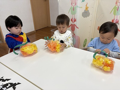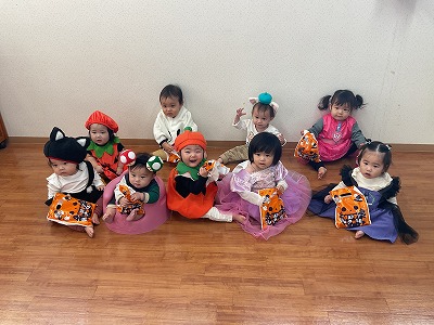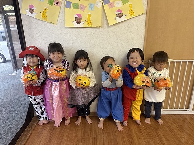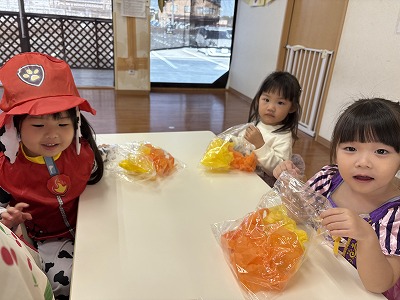 令和7年10月30日 🎃Happy♡Halloween🎃 今日は、保育園でハロウィンパーティーを しました♬ 各クラスでは、カボチャ・スティック・キャンディーの 制作をしたり…絵本を見たり… ゲームをして楽しみましたよ🍬🍭 いつもと違う服装での登園に なんだか照れながらも嬉しそうでした♡ ご協力ありがとうございました(*^^*)
