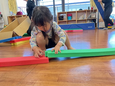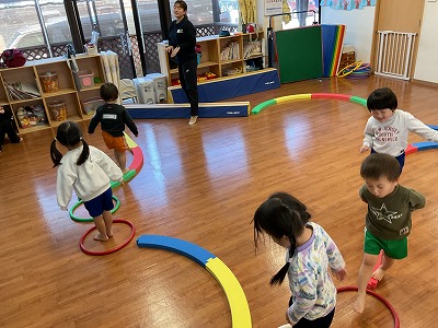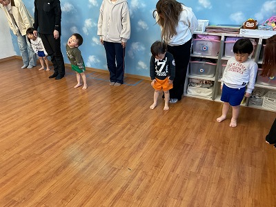 令和8年2月26日 2歳児親子体育教室 2歳児(きりん組)の親子体育教室を行いました! 初めはいつもと違った雰囲気に緊張した様子の こどもたちでしたが、体育教室が始まると いつも通り元気いっぱい体を動かして、 楽しんでいましたよ♩ 2歳児は、卒園前最後の体育教室でした。 大好きな保護者の方と一緒に 体操をすることができて、 とっても喜んでいましたね♡ ご参加いただきありがとうございました☺
