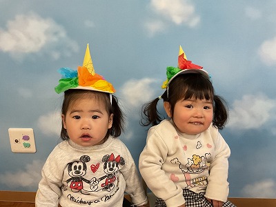 子ども達がダルマに変身して、可愛い制作に