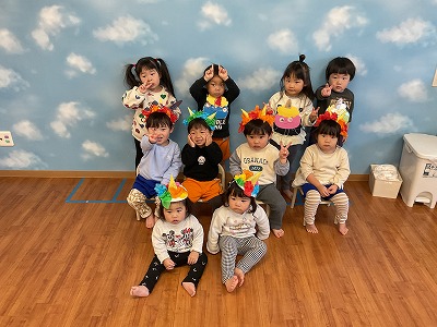 元気に「豆まき」の歌を歌いました♬