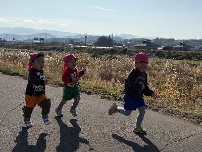 頑張っています♪園庭でかけっこや行進の練