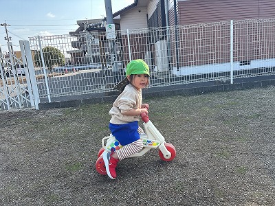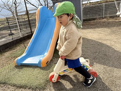 公園では三輪車やボール遊びを楽しんで